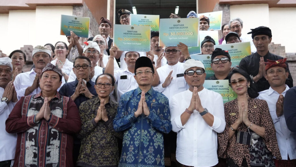Denpasar (Kemenag) — Menteri Agama Nasaruddin Umar menyapa dan menemui masyarakat Bali yang terdampak banjir beberapa hari lalu. Menag juga meninjau tempat ibadah umat Hindu di Pura Taman Beji Pasar, Badung, dan memberikan bantuan untuk Pura dan korban banjir sebesar Rp300 Juta. Hadir mendampingi Menag, Staf Khusus Menag bidang Kebijakan Publik, Media, dan Pengembangan SDM, […]